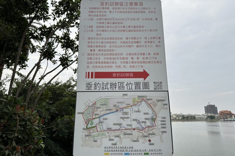 蓮池潭では釣りがOKな場所が決まっています。